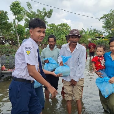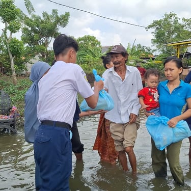 Kegiatan Kepedulian Siswa Kepada Korban Banjir di Kp. Buni Bakti Kabupaten Bekasi